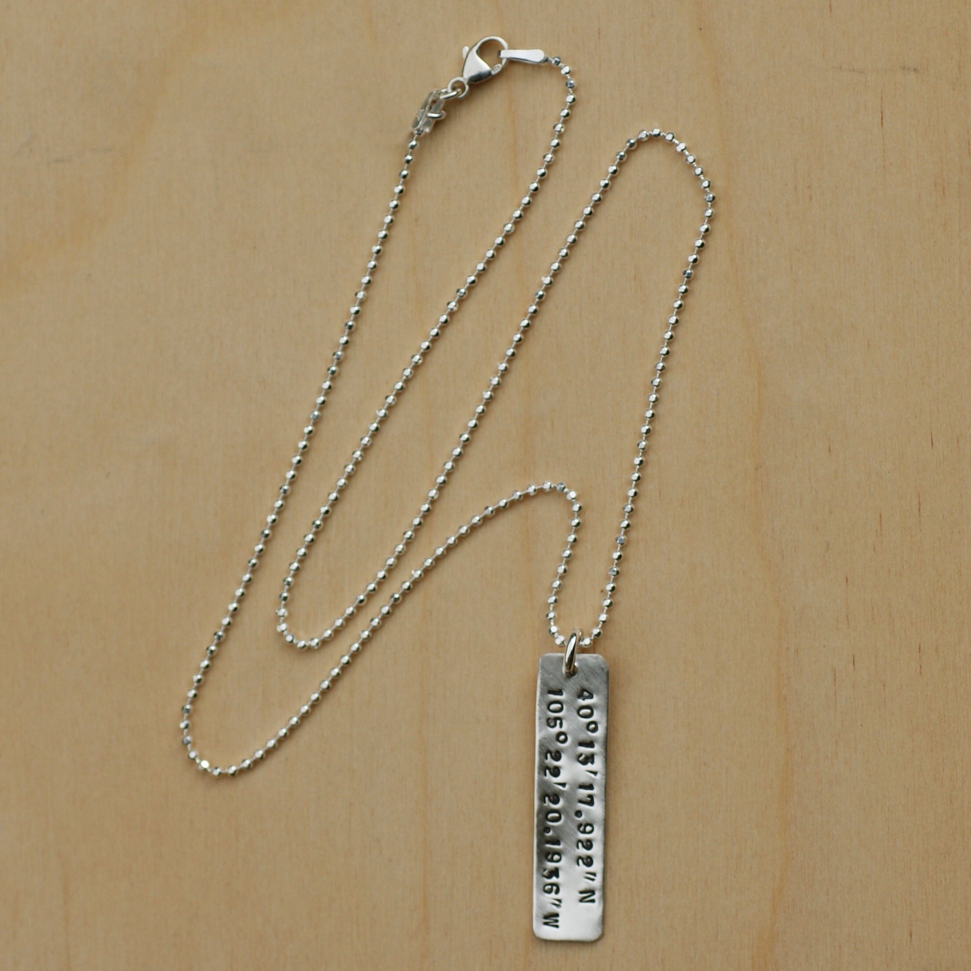 Pick anywhere in the world...the exact spot you got engaged, your favorite bar from the vacation, your hometown before heading off to college or maybe just the dream destination and we'll hand stamp the GPS coordinates for you to wear everyday.