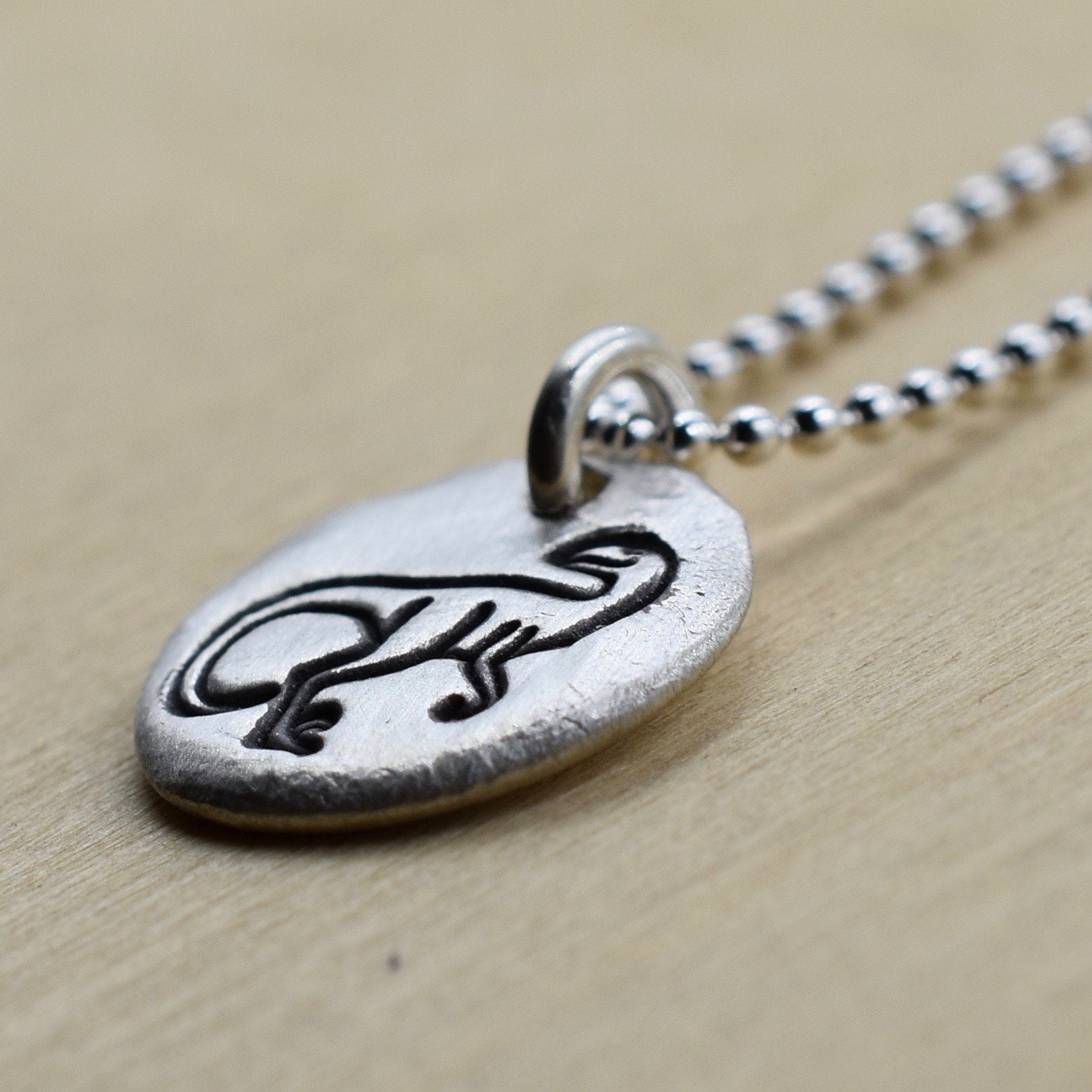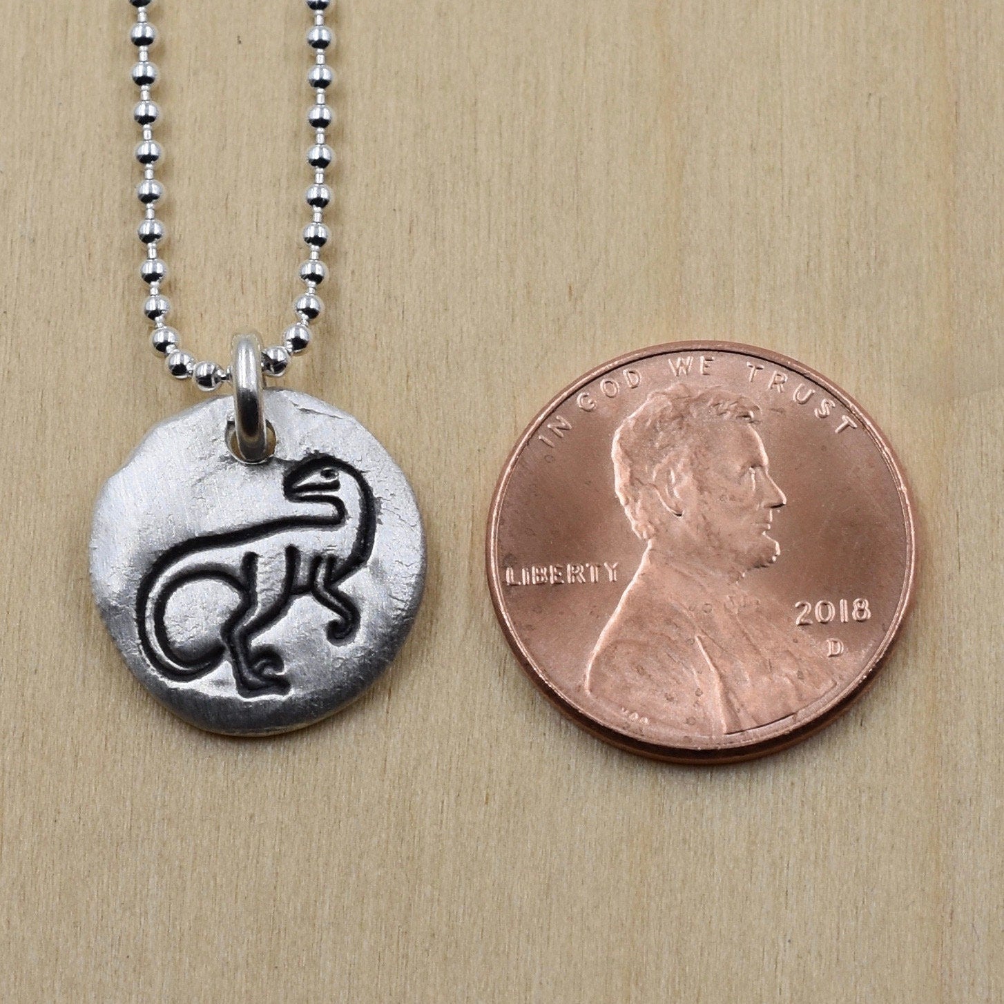 This velociraptor was hand drawn in the studio, stamped into precious metal clay and then fired to create this solid sterling silver nugget that you can't find anywhere else. Makes a perfect gift for any dinosaur fan or budding paleontologist.